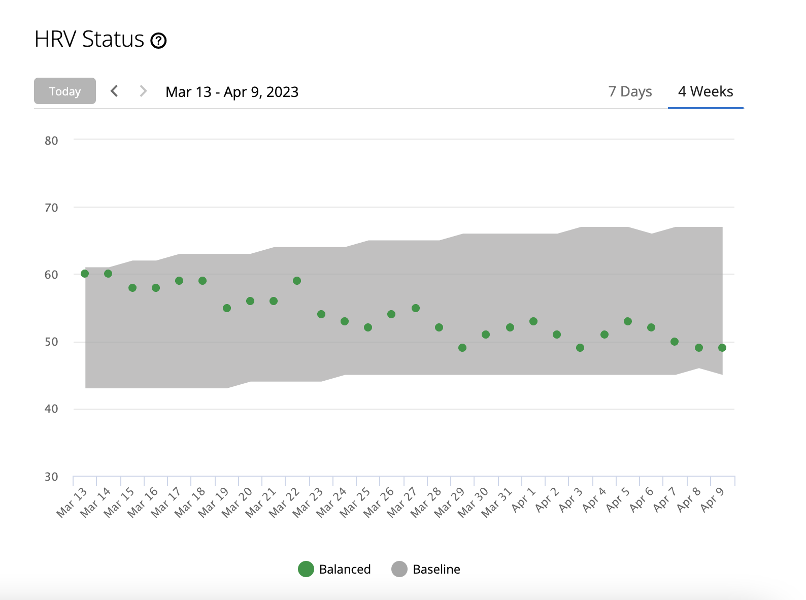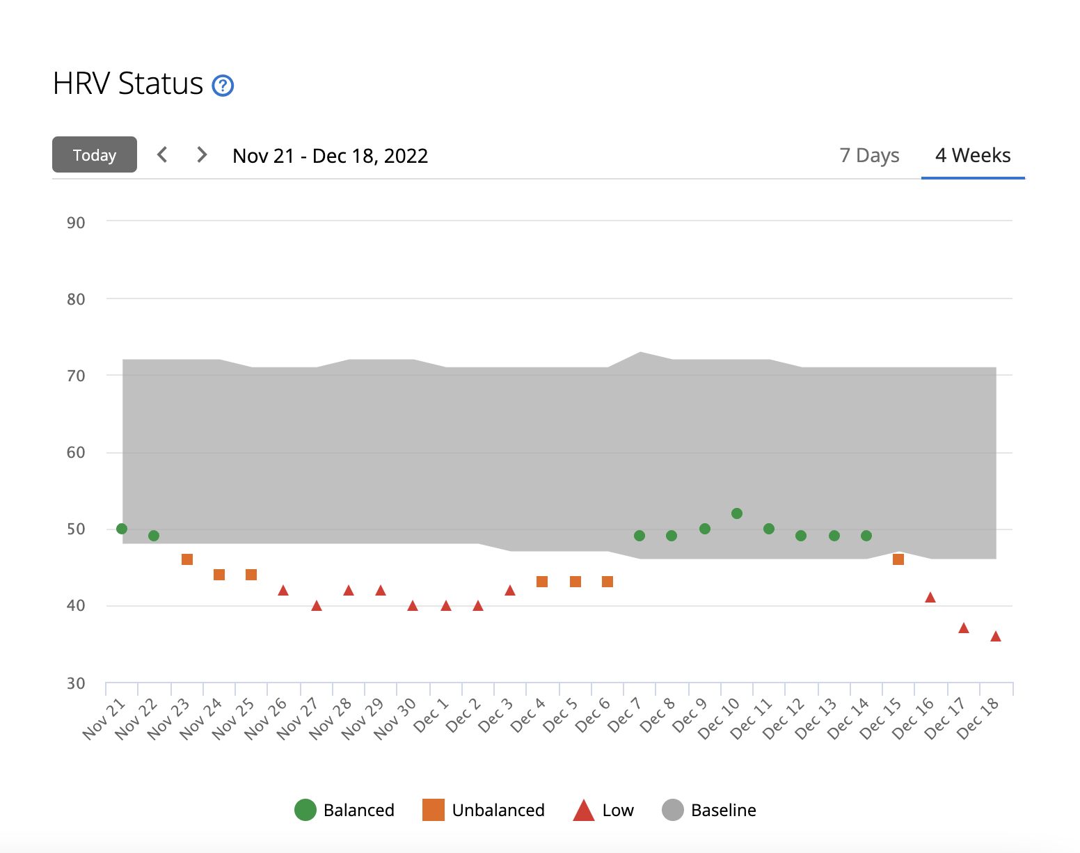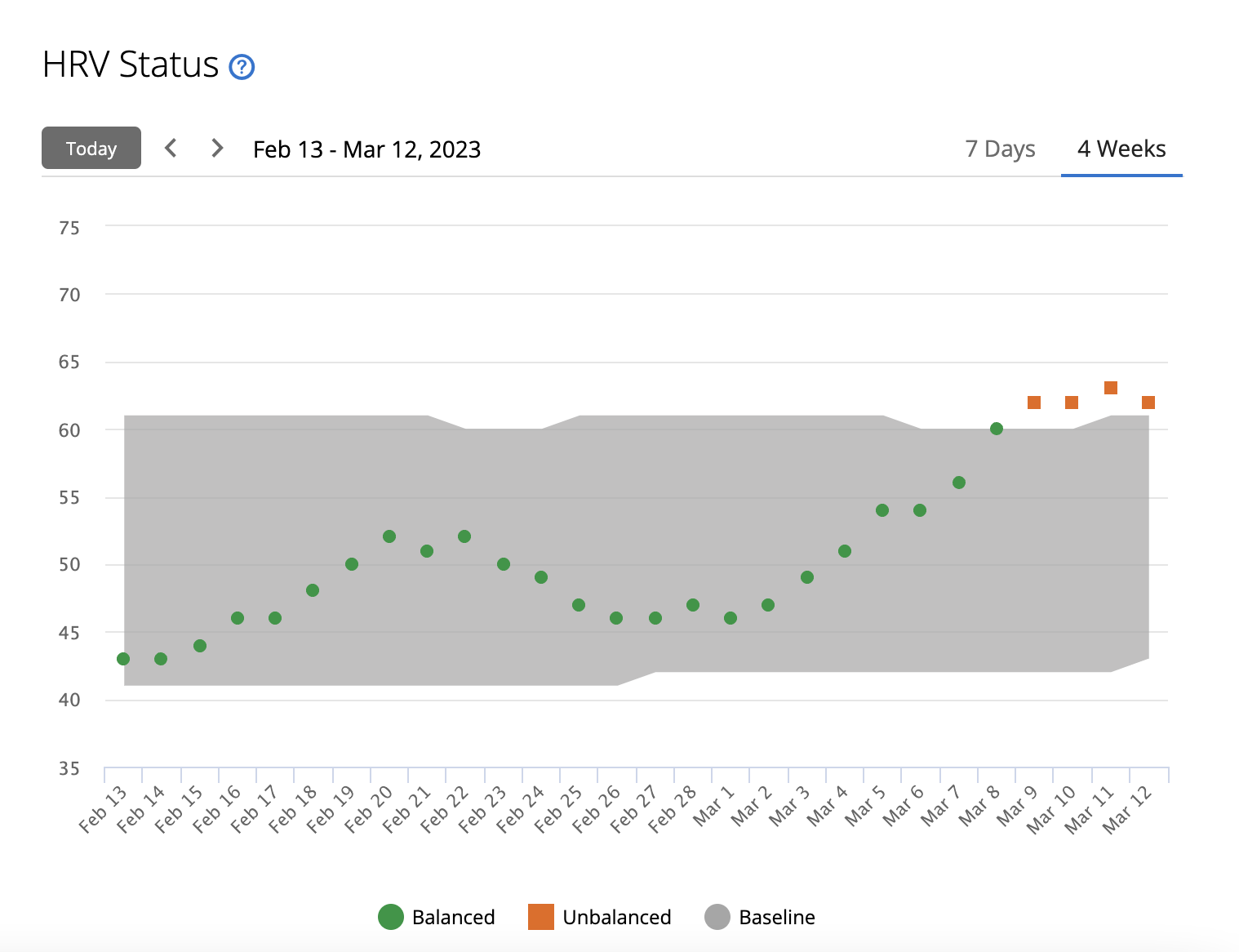 Existuje kvázi vedecké vysvetlenie - nie však moje: Stav HRV opisuje, ako váš autonómny nervový systém reaguje na prostredie, a to fyzicky aj psychicky. Vyrovnané hodnoty HRV môžu naznačovať pozitívne znaky zdravia, ako je dobrá rovnováha tréningu a regenerácie, väčšia kardiovaskulárna kondícia a väčšia odolnosť voči stresu. Nevyvážené, nízke alebo slabé hodnoty môžu byť okrem iného znakom únavy, väčšej potreby regenerácie alebo zvýšeného stresu. (Viac tu)